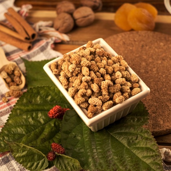DOĞAL YOLLARLA KURUTULMUŞ BEYAZ DUT, YÜKSEK BESİN DEĞERİ VE DOĞAL TATLILIĞIYLA SAĞLIKLI BİR ATIŞTIRMALIKTIR.