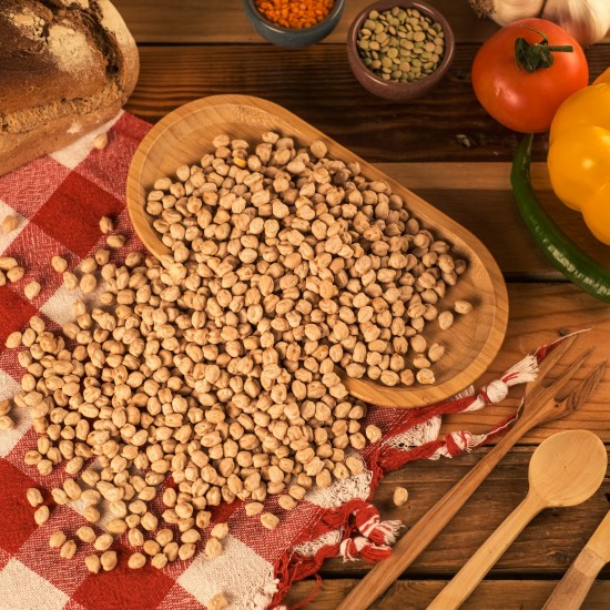 NOHUT, DOĞAL VE BESLEYİCİ İÇERİĞİYLE ÖNE ÇIKAN BİR BAKLAGİLDİR. BOL PROTEİN, DİYET LİFİ, DEMİR VE B VİTAMİNLERİYLE ZENGİNDİR. ÇORBA, SALATA, HUMUS VE SICAK YEMEKLERDE KULLANILABİLİR. TOK TUTUCU ÖZELLİĞİYLE DENGELİ BESLENMEDE ÖNEMLİ YER TUTAR.