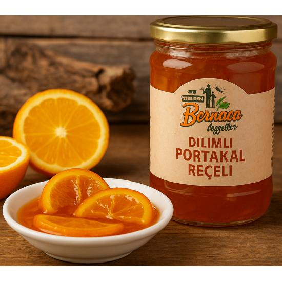 Portakal reçelimiz, taptaze ve seçilmiş portakalların kabuklarıyla birlikte kaynatılmasıyla elde edilmiştir. Tamamen doğal yöntemlerle, katkısız olarak üretilmiştir. Parça parça portakal dilimleriyle sofralarınıza hem görsel hem de damak zevki sunar. Ege’nin bereketli topraklarında yetişen portakalların eşsiz aromasını, kış ve yaz sofralarınızda güvenle tüketebilirsiniz.İÇİNDEKİLER